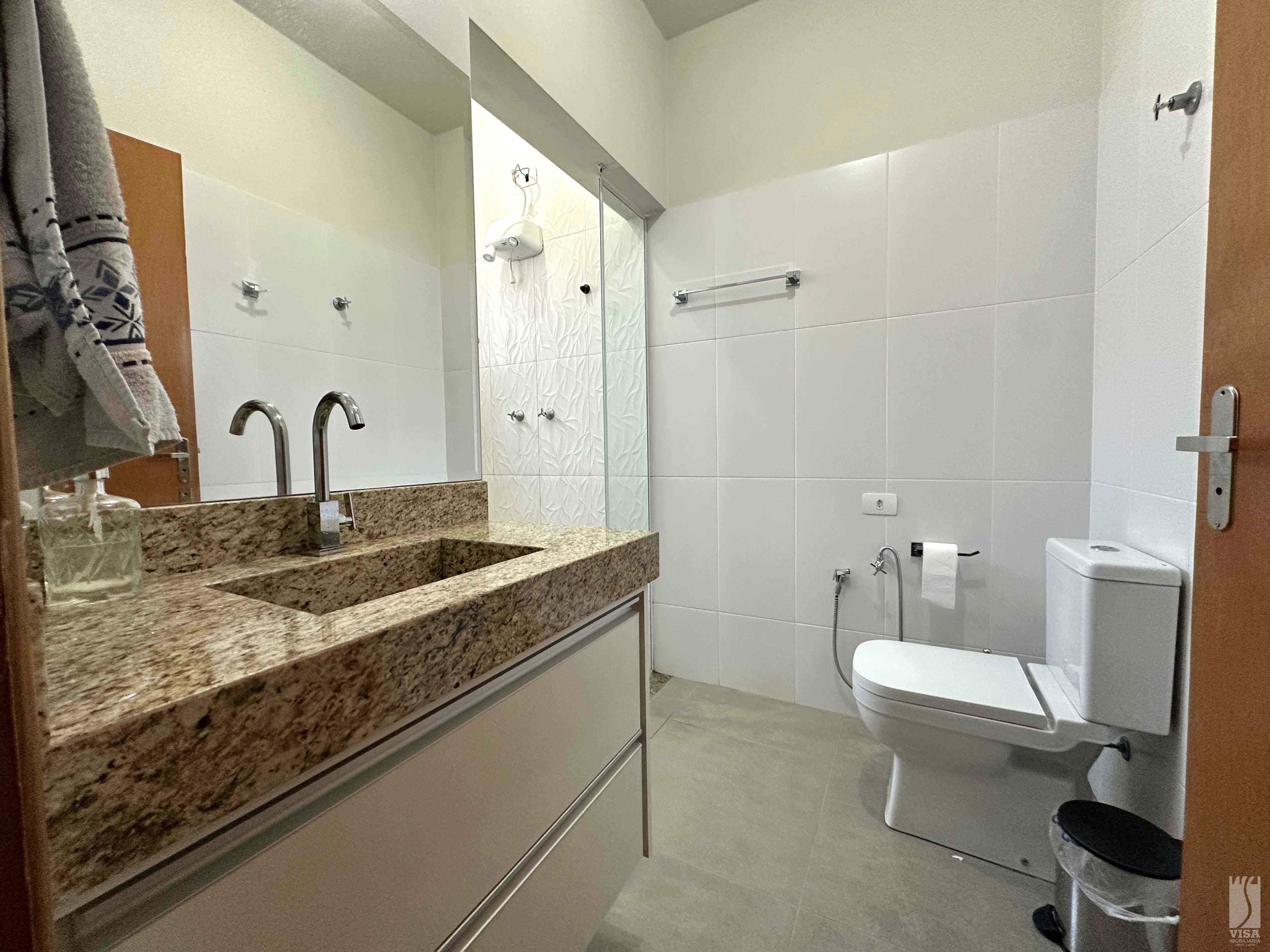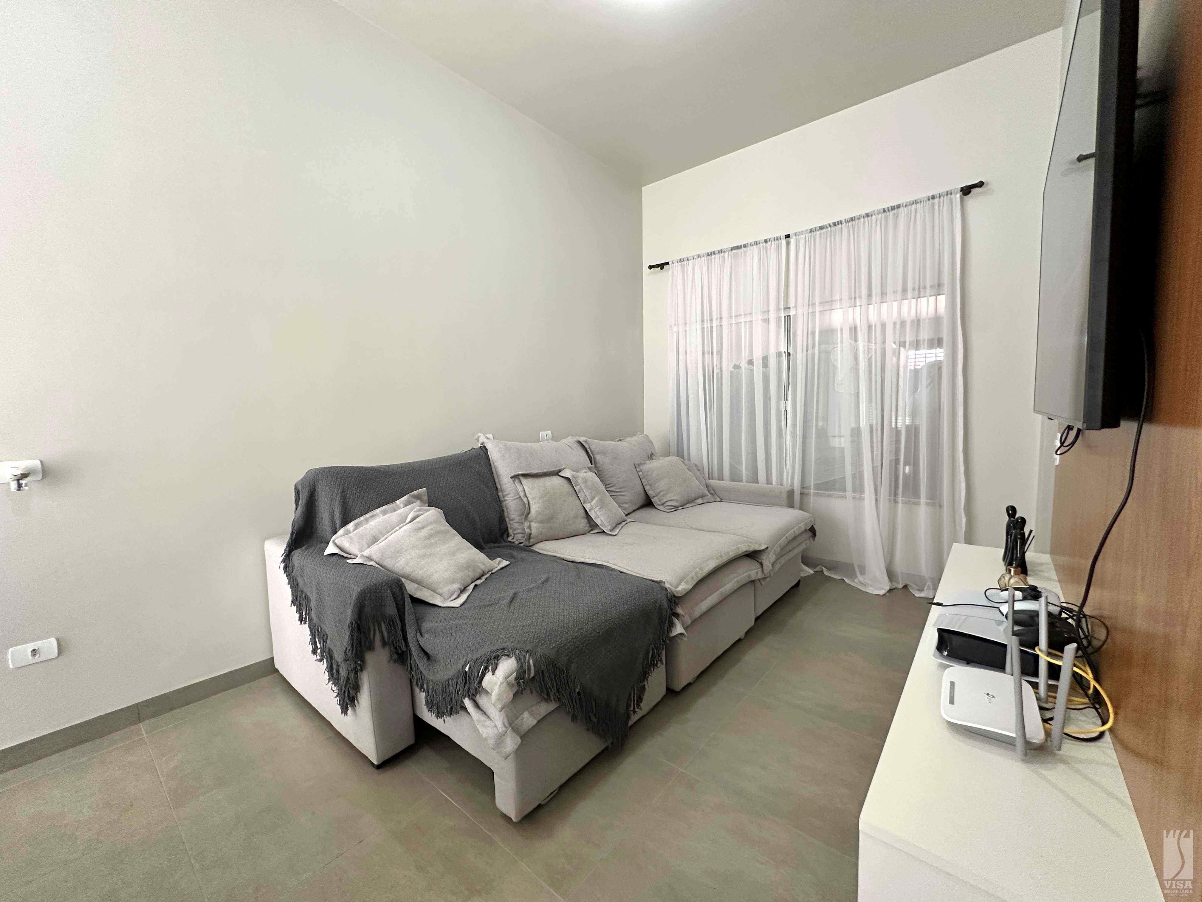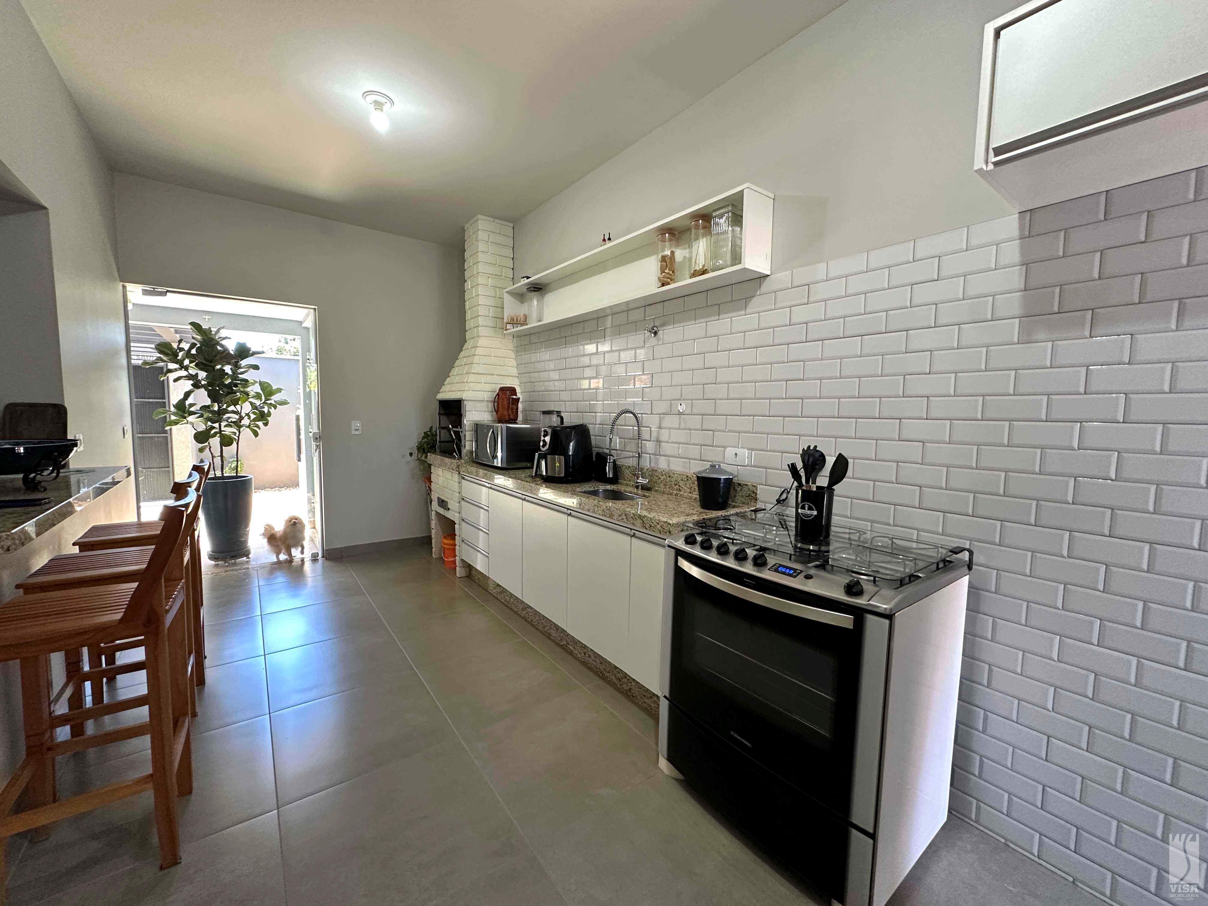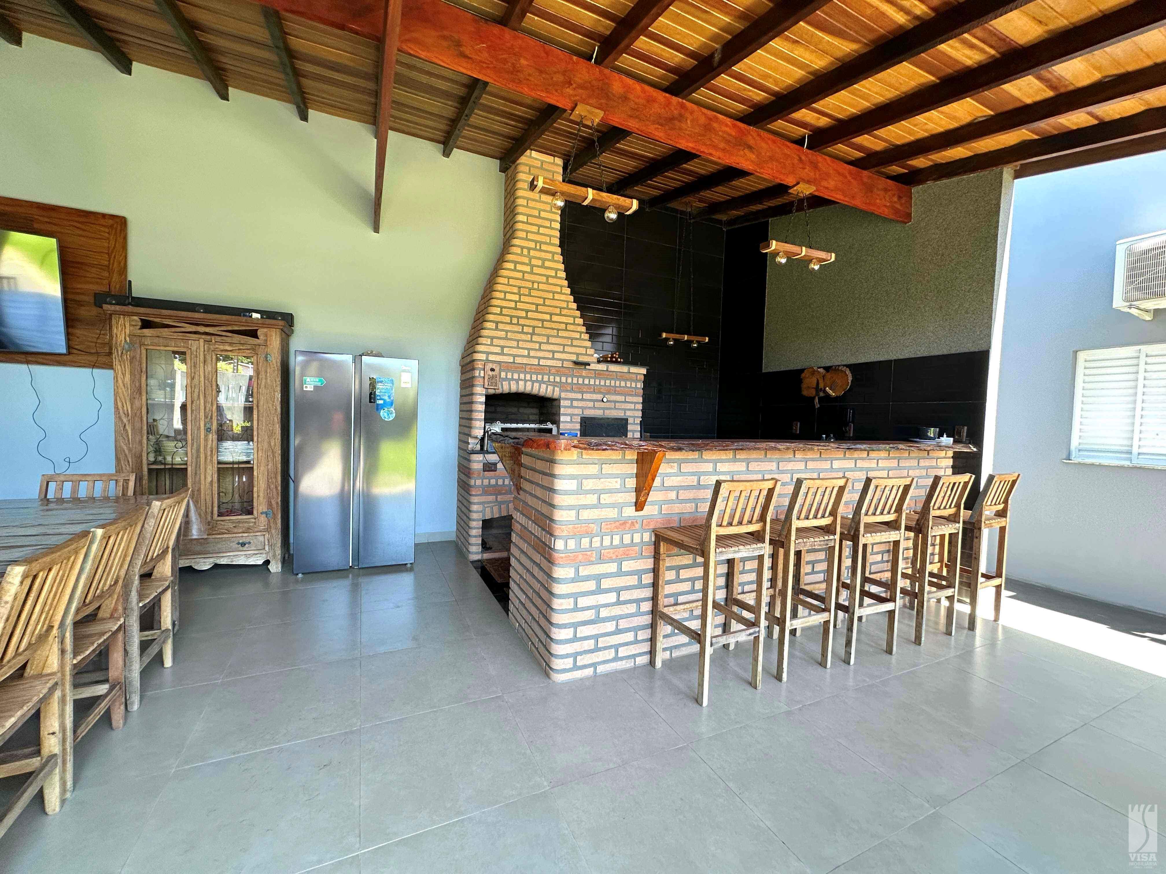 Casa com Sala de TV, Sala de Jantar, Pé Direito Alto, 03 Quartos sendo 01 Suíte, 01 Banheiro Social, Cozinha c/ Móveis Planejados, Área de Lazer de Amplo Espaço c/ Fogão à Lenha, Forno, Churrasqueira, Banheiro Externo, Jardins e Vagas de Garagem para 02 Veículos. Ar-Condicionado nos Quartos e na Sala.