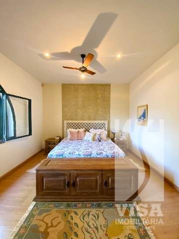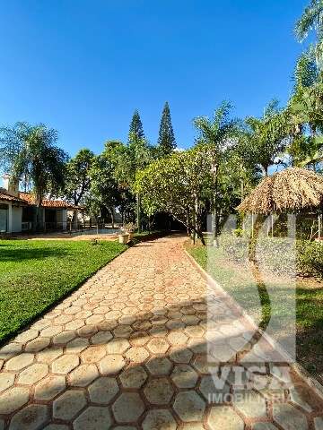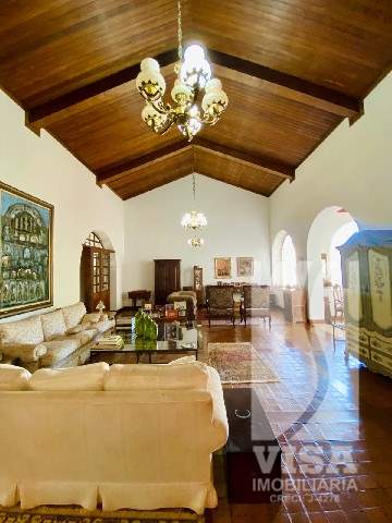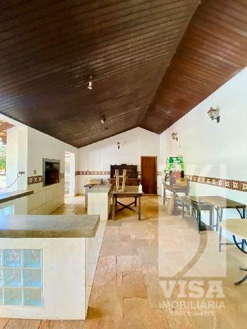 Residencial com Sala, Sala de TV, Sala de Jantar, Sala de Jogos, Sala de Visitas, Lavabo, 04 Suítes, 03 Banheiros, Cozinha, Copa, Depósito, 01 Banheiro de Serviço, Área de Lazer com Churrasqueira, 02 Banheiros Externos, Piscina, Campo de Futebol e Vagas de Garagem para 06 Veículos.